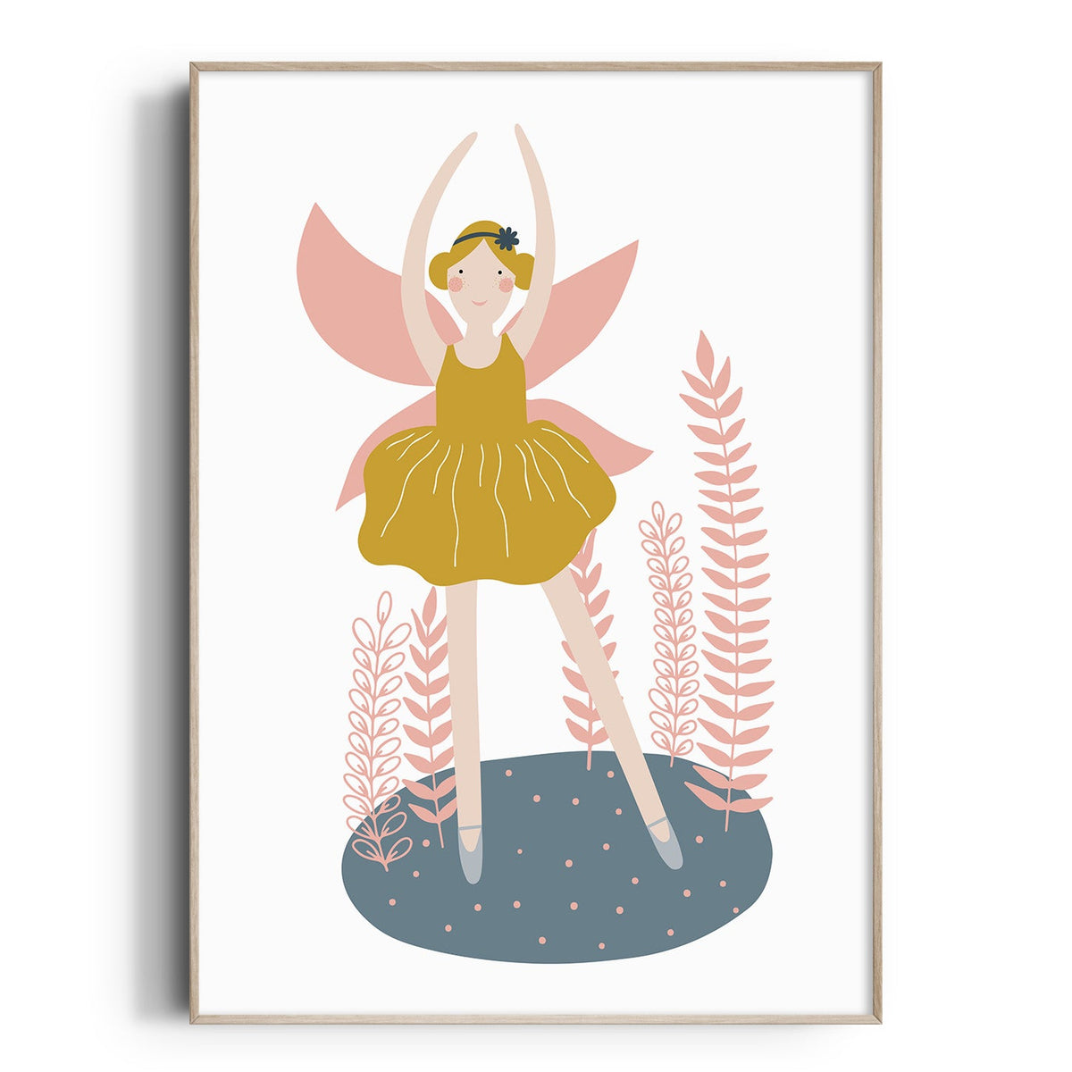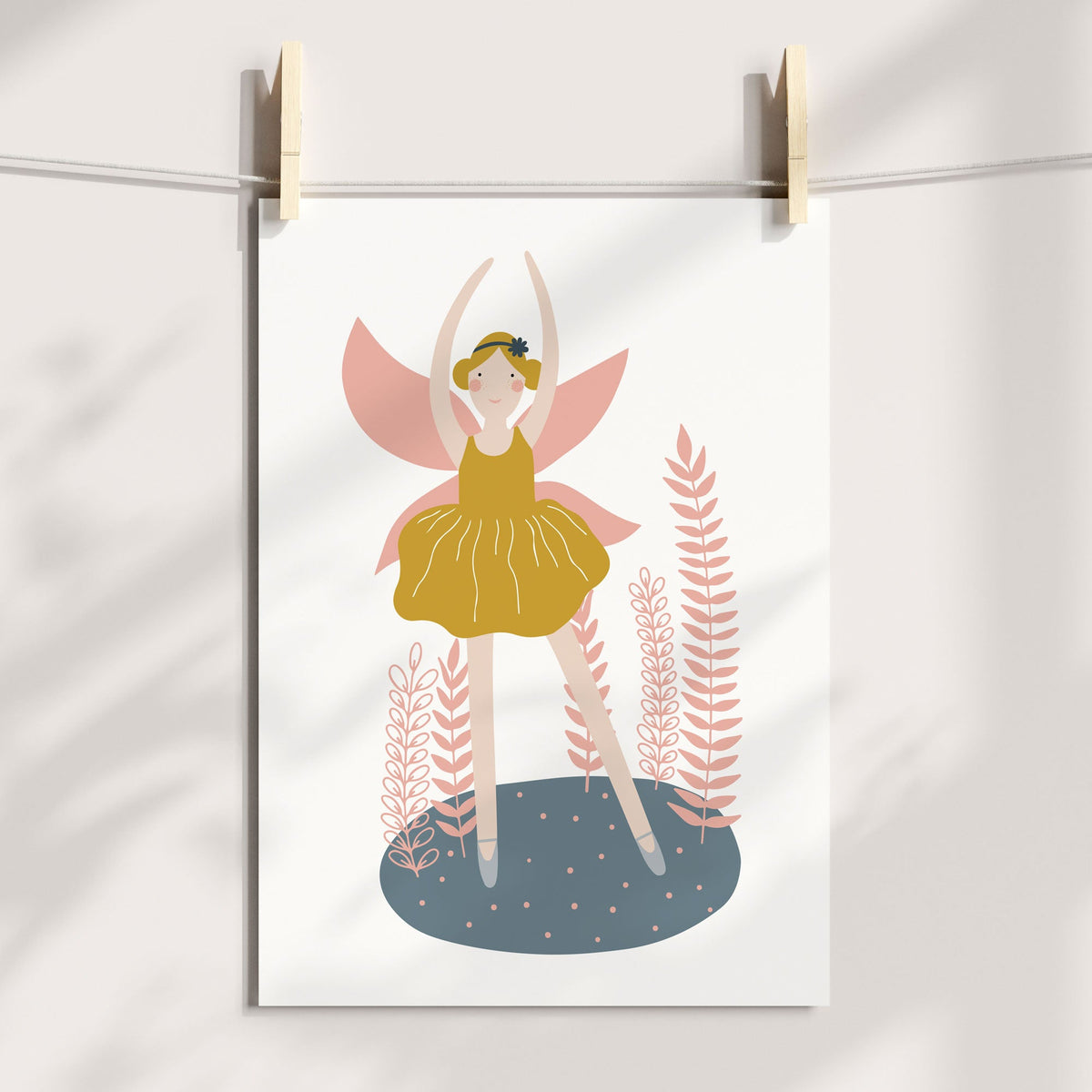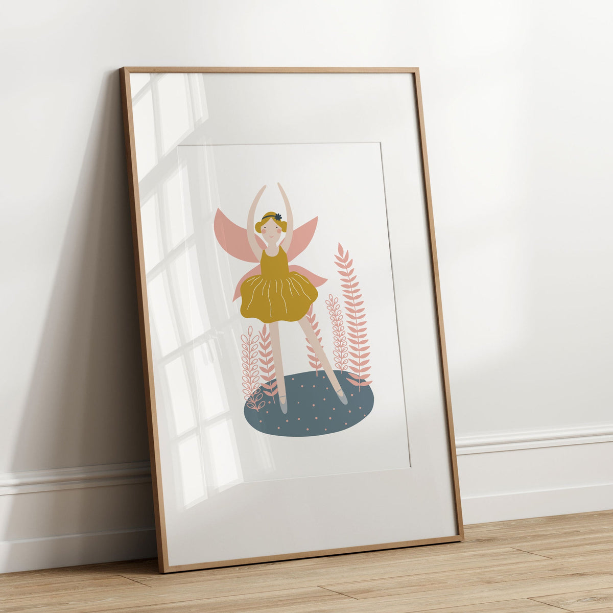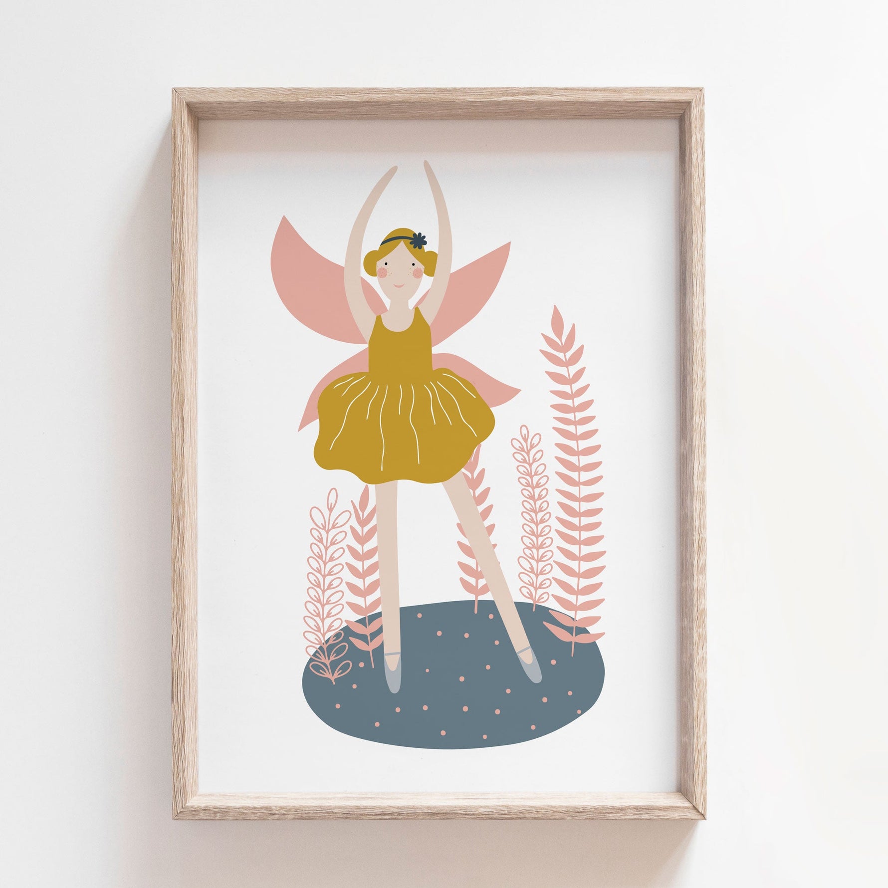 Make a statement with this fairy ballerina wall art, featuring a mustard tutu & pink wings it can be paired with our other co-ordinating  prints and is perfect for any little girl's ballet, dance or fairy themed nursery, bedroom or playroom decor.