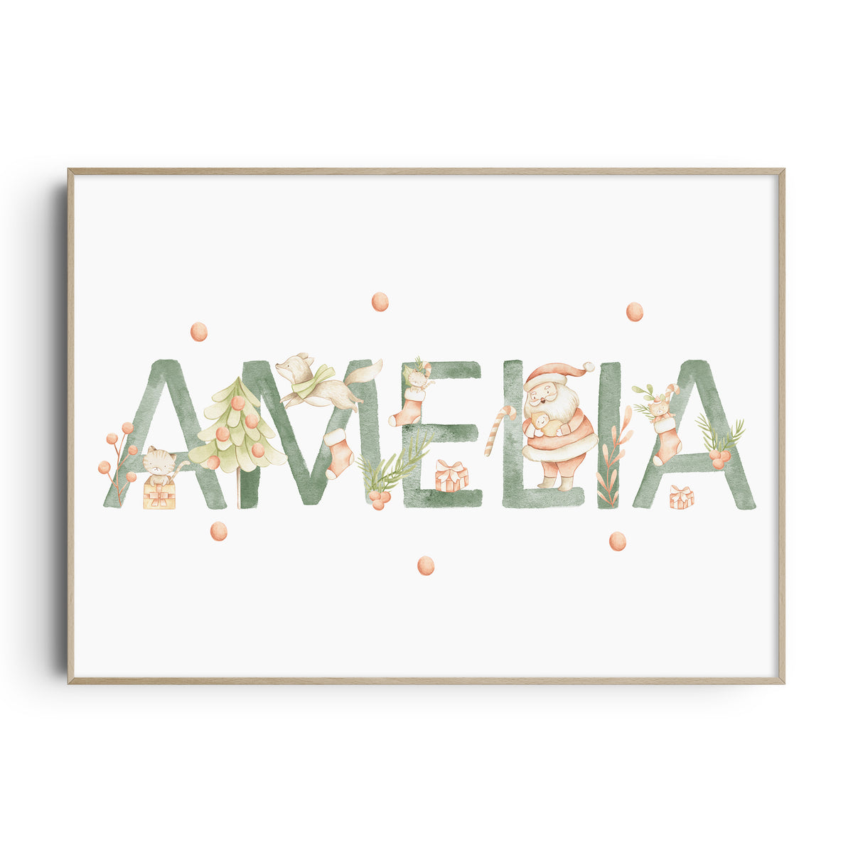 A beautiful Christmas keepsake that can be used year after year, this Santa themed name print is the perfect way to add to add some festive decoration to your little one's nursery, bedroom or playroom decor.