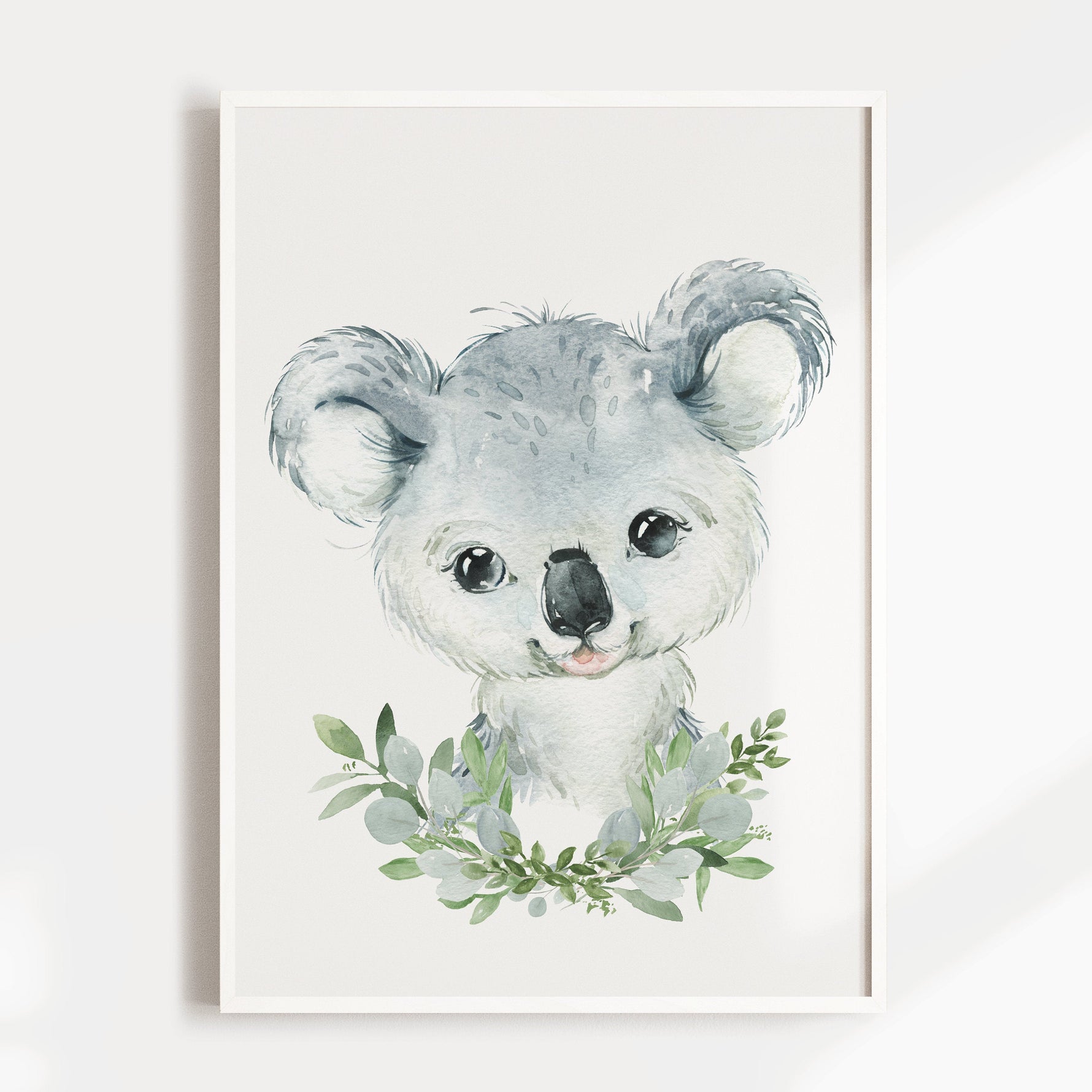 This watercolour baby koala wall art, would make a lovely addition to a nursery, child's bedroom, or playroom. Pair it with one of our many other baby Australian animal prints or use as a stand alone statement.